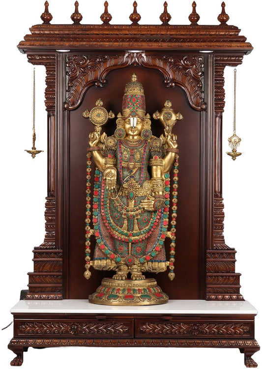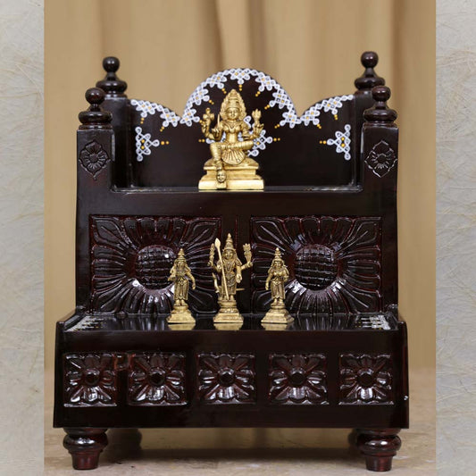 Muthuradha - Puja Mandapam In Teakwood With Dark Teakwood Finish