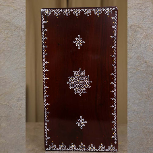 Handcrafted Wooden Manai With Hand-Painted Peacock Border