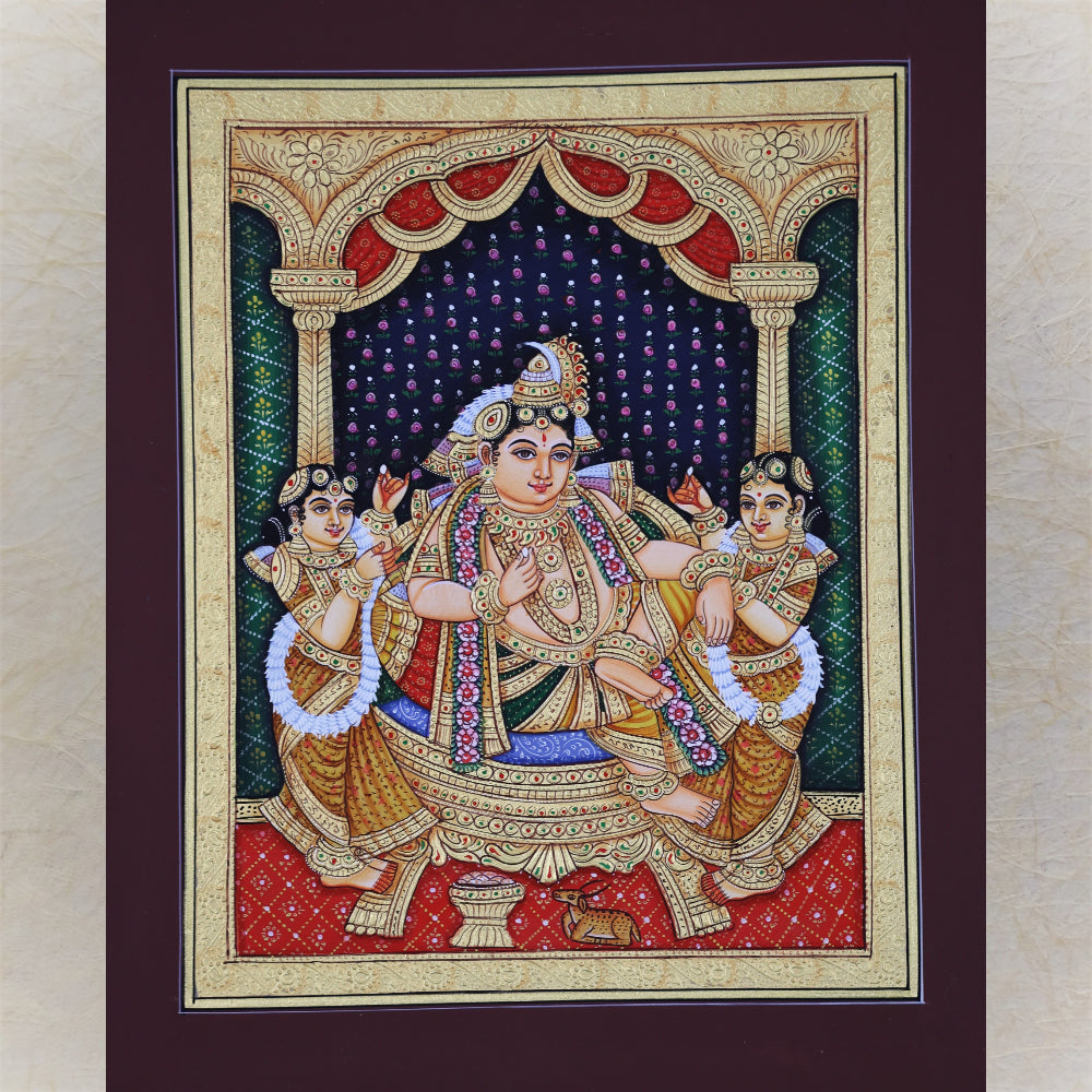 Description: This stunning crafted painting embodies the blessings of Shrinathji, Krishna's beloved form from Nathdwara. Exuding an aura of divinity and meticulous craftsmanship, this piece is a true depiction of a traditional Pichwai artwork. This beautiful Shrinathji is elaborately adorned in jewelry, dressed in floral garlands, and holding the sacred lotus, which is symbolic to purity and devotion. With frame - 18X22 Without frame- 13x15